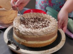Preseći ohladjen biskvit na 3 dela pa svaki isprskati sa mlekom ili čokoladnim mlekom ili sirupom od vode i šećera, po želji, ananeti krem izmedju kora.